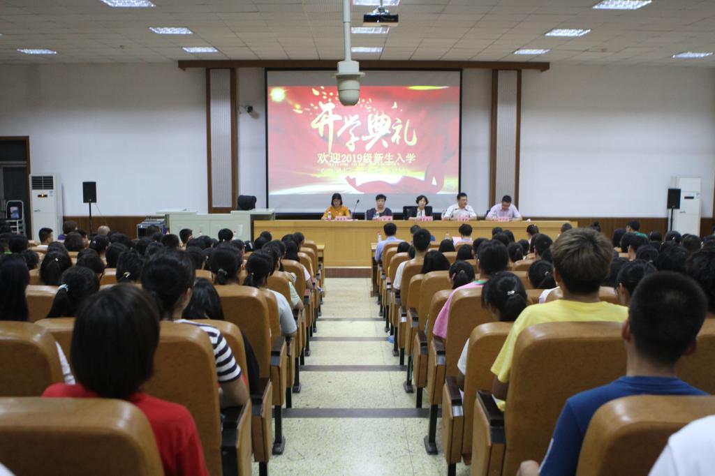 8月26日上午,122cc太阳成集团在c201举行2019级新生开学典礼。公司党委书记贾喜环、经理王重润、副经理刘颖、杨雪美、各系主任副主任出席典礼,学院全体辅导员、2019级全体新生、助理班主任及部分新生家长参加,会议由公司党委副书记王冬坡主持。