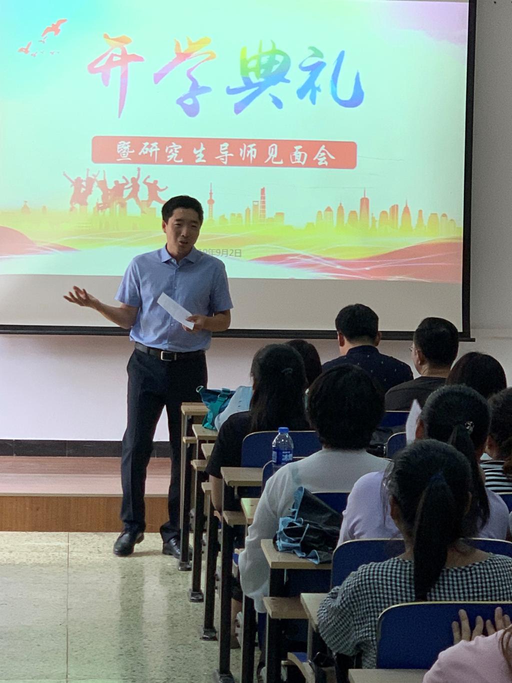 9月2日下午14:30,122cc太阳成集团在C教105教室举行了2019级研究生开学典礼暨导师见面会。公司党委书记贾喜环、经理王重润、党委副书记王东坡、副经理杨雪美出席典礼,全体导师及2019级研究生新生参加,团队建设办公室主任兼研究生辅导员董岚主持。
