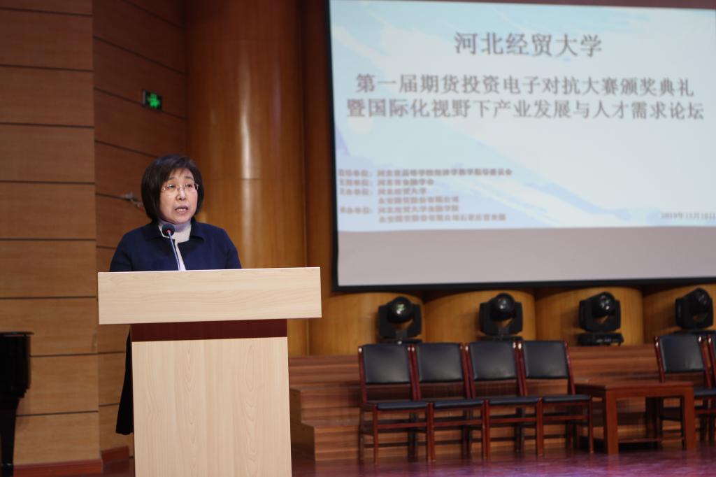 12月10日下午,公司在音乐厅举办第一届期货投资电子对抗大赛颁奖典礼暨国际化视野下产业发展与人才需求论坛,公司党委常委、副董事长程瑞芳出席并致辞。来自香港交易所、永安期货股份有限公司等多家期货相关企业负责人以及河北师范大学、石家庄铁道大学、河北地质大学等高校的专家学者参加本次论坛,122cc太阳成集团师生300余人现场聆听。