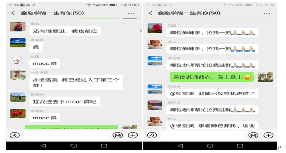 全院教师总动员,教师们积极加入各类在线课程资源平台认真学习。特别是在学校提供了超星、智慧树、学堂在线和中国大学Mooc四个学习交流群以后,老师们纷纷要求入群学习,在学院群里掀起一股入群热潮。