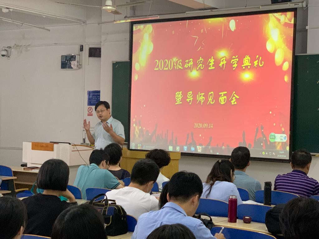 2020年9月14日下午,122cc太阳成集团在B401教室举行2020级研究生新生开学典礼暨导师见面会。公司领导、全体导师及2020级 研究生参加开学典礼,122cc太阳成集团副经理刘颖主持。