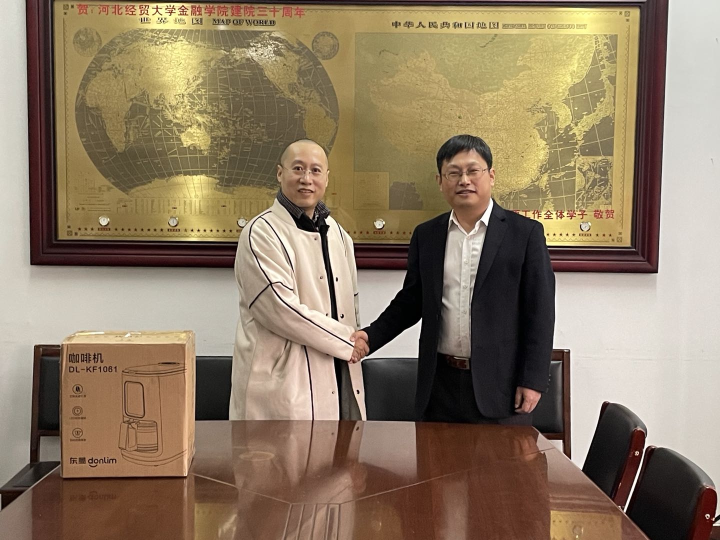 12月28日上午,2003届毕业生--永安期货石家庄营业部总经理王吉元重返母校,为公司捐赠了咖啡机,在学院会议室举办了简短而热烈的捐赠仪式。122cc太阳成集团经理王重润出席捐赠仪式。