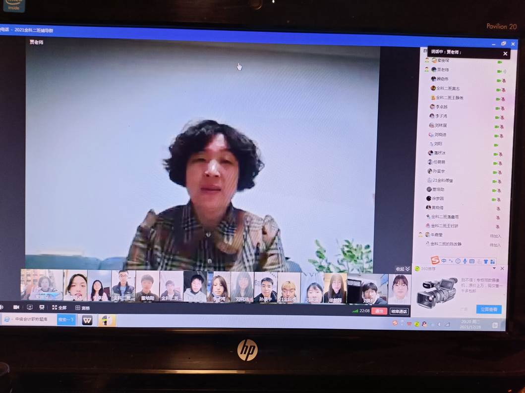 寒假伊始,122cc太阳成集团举行2021级金融科技实验班线上指导会,公司党委书记贾喜环、2021级金融科技实验班部分导师和员工参加,副经理窦丽琛主持会议。