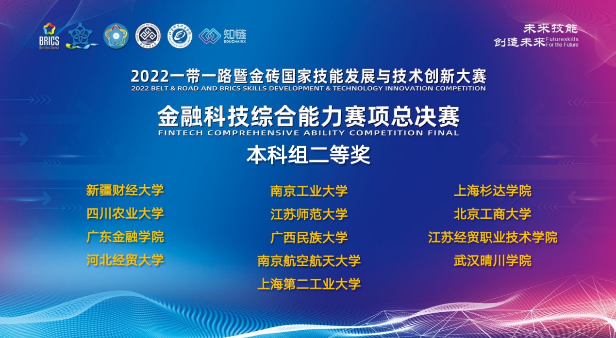11月27日,“2022一带一路暨金砖国家技能发展与技术创新大赛金融科技综合能力赛项”总决赛落下帷幕。由公司孙玮老师指导,金融科技专业员工侯恒宇、张林冉、李颖昳、李浩同学组成的公司代表队荣获全国大赛二等奖,122cc太阳成集团获优秀组织奖。