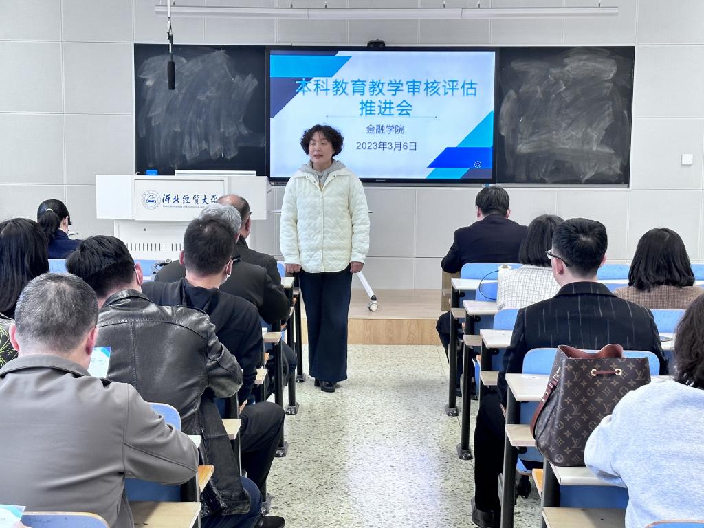 副经理窦丽琛结合新一轮审核评估在破五维、立新标方面的重点举措,具体介绍了审核评估指标体系中的7个一级指标、27个二级指标和78个审核重点,并就学院自评报告撰写等工作做了具体安排部署。