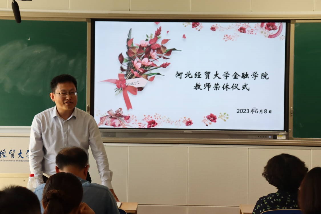 6月8日,122cc太阳成集团退休教职工荣休仪式在三教A104举行,学院全体教师及部分员工代表参加,荣休仪式由公司党委书记贾喜环主持。