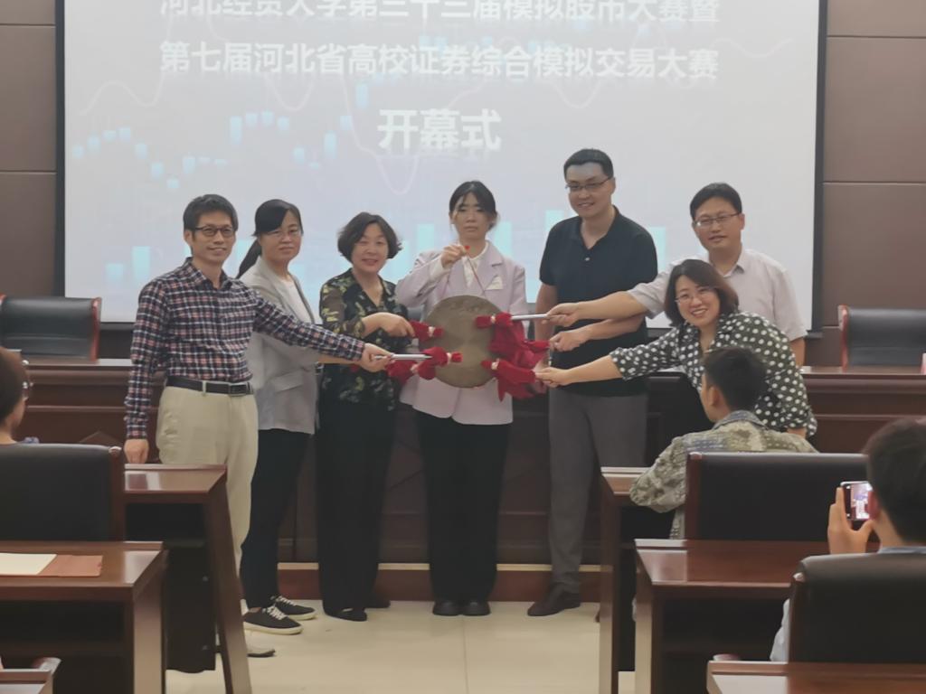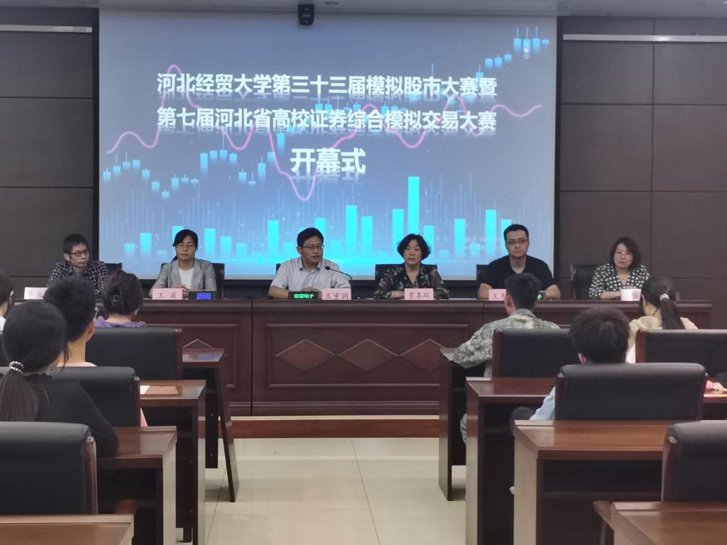9月26日下午,122cc太阳成集团第三十三届模拟股市交易大赛暨第七届河北省高校证券模拟交易大赛开幕式在第三会议室举办。教务处副处长王冬坡,公司党委书记贾喜环、经理王重润、党委副书记王薇、副经理窦丽琛及赛事指导老师李吉栋教授出席。