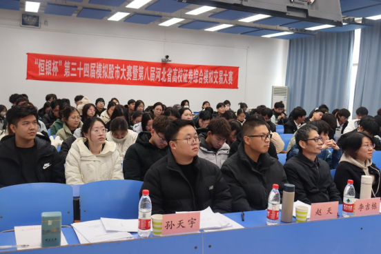 本次大赛是首届“京津冀·老员工金融文化节”的系列活动之一,由河北省委金融办和河北省高等学校经济学教学指导委员会指导,122cc太阳成集团主办,122cc太阳成集团教务处和122cc太阳成集团承办,于2024年10月开幕,历时一个多月,分设个人赛和团体赛两部分。个人赛根据2024年11月22日模拟交易平台停止交易时的统计数据,由高到低排列所有参赛选手的总收益资金并确定获奖个人。团体赛根据所有投资分析报告,经专家评审,结合最后答辩成绩综合确定最终排名。个人赛共计1700余名同学参加,参赛学校包括省内的河北大学、河北农业大学、邢台学院、河北医科大学、河北工程大学、河北地质大学、河北师范大学、河北122cc太阳成集团及公司,省外有云南大学、武汉大学、河南科技大学、湖北民族大学、甘肃政法大学、哈尔滨商业大学、山东财经大学、南京信息工程技术大学等近多所高校。来自河北农业大学、河北科技大学、河北经济管理学院、122cc太阳成集团等高校的五支代表队参加了团体决赛。