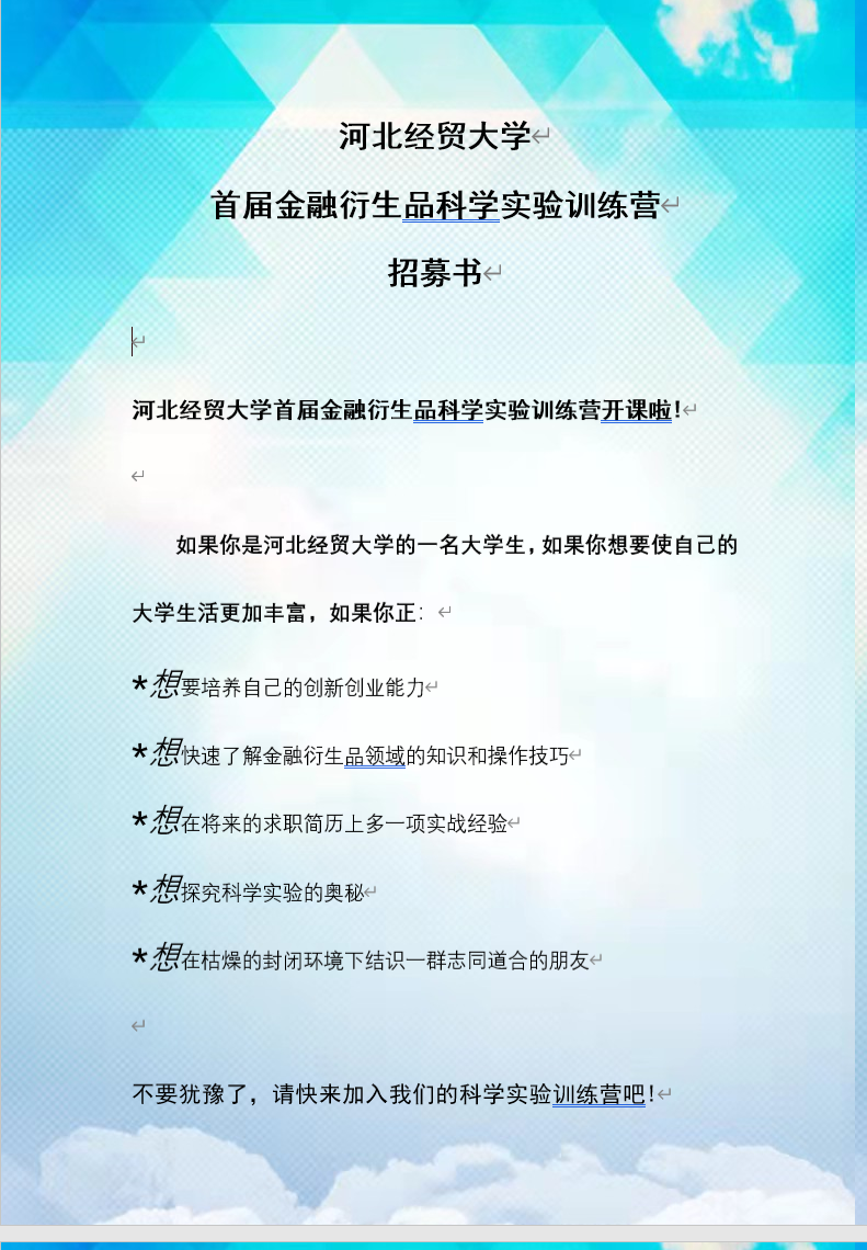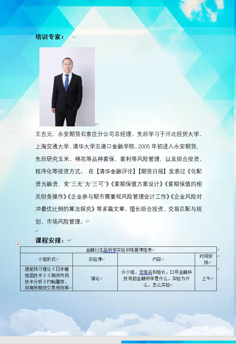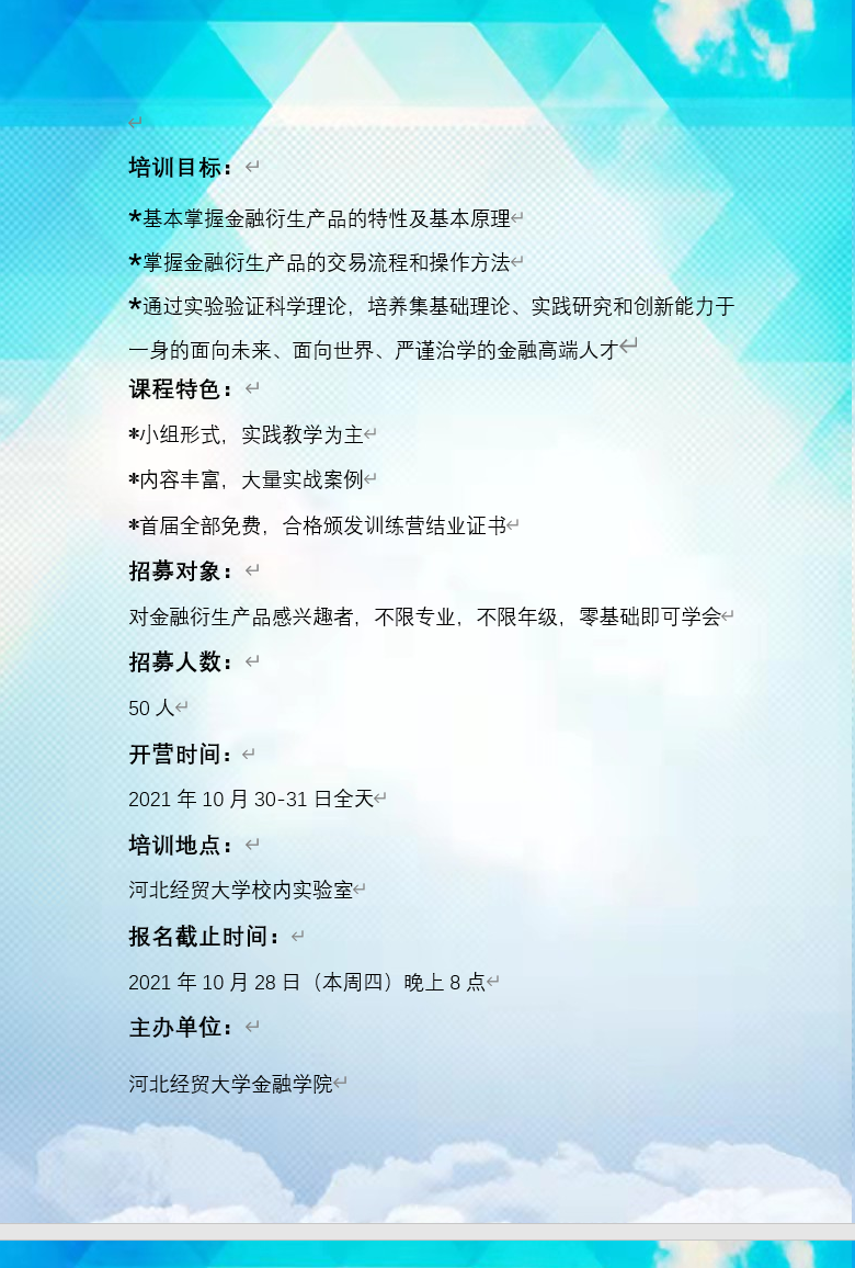122cc太阳成集团首届金融衍生品科学实验训练营招募书