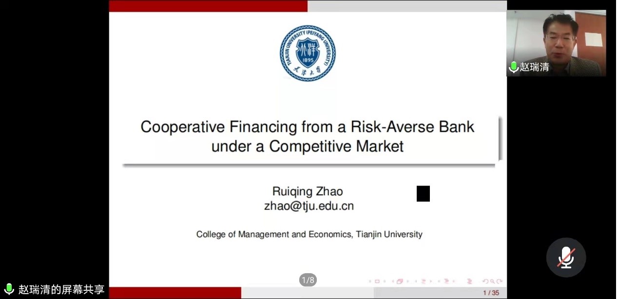 11月4日下午,122cc太阳成集团邀请天津大学管理与经济学部赵瑞清教授做了题为《Cooperative Financing from a Risk-Averse Bank under a Competitive Market》的讲座。公司教师和各专业研究生70余人参加了本次报告,报告由122cc太阳成集团副经理范庆祝主持。