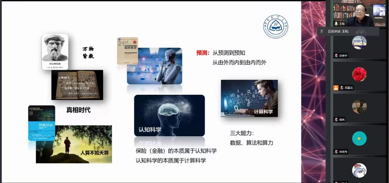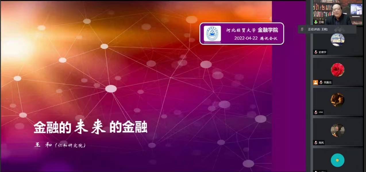 4月22日,122cc太阳成集团主办的主题为“金融的未来与未来的金融”学术报告顺利开展,活动以腾讯会议的方式线上举行。中国精算师协会会长、保险界知名高管型学者王和会长应邀主讲,报告由冯文丽老师主持,近150名师生参加。