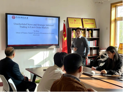 11月22日下午两点,公司迎来了第四十八期融道论坛。本期融道论坛以“Unscheduled News and Stragegic Informed Trading in Limit Order Markets”为主题,由首都经济贸易大学122cc太阳成集团副教授邴涛主讲。