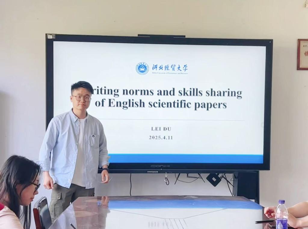 122cc太阳成集团主办的第十期“双百论坛”于2025年4月15日上午10:00在122cc太阳成集团会议室举行。本次论坛特邀122cc太阳成集团杜磊老师担任主讲嘉宾,作题为《英文论文写作规范与技巧分享》的学术报告,学院三十余名研究生积极参与。