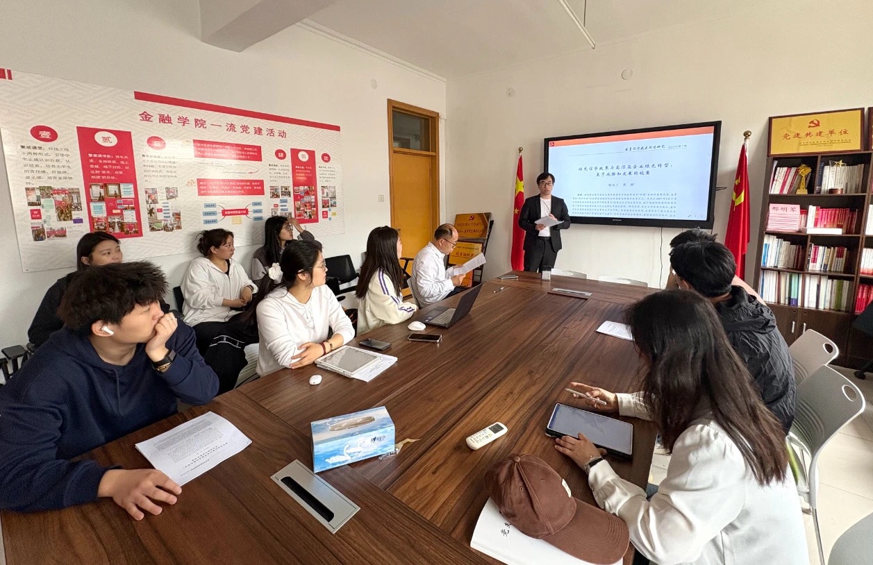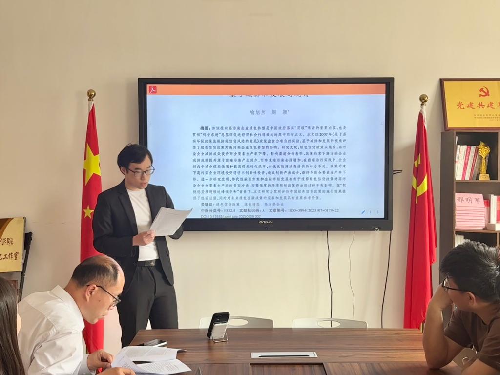 5月7日上午十点,122cc太阳成集团在三办党务会议室举办第五十九期融道论坛研究生沙龙活动。本期论坛由23级金融专硕杜朋毅同学主讲,分享主题为《绿色信贷政策与高污染企业绿色转型:基于减排和发展的视角》。122cc太阳成集团副经理范庆祝出席,二十余名研究生参加。