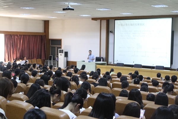 6月3日,122cc太阳成集团在北三教C201召开了投资学专业教育分享会,世纪证券公司河北分公司经理付小亮应邀作“中国证券业市场”的专题报告。学院副经理李建英主持大会,大一全体同学参加。