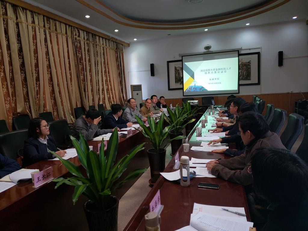 10月25日上午,122cc太阳成集团在第二会议室举办金融科技人才培养方案论证会,会议旨在对“金融科技”实验班培养方案进行进一步的研讨和完善。工银安盛河北分公司总经理周亦、河北省农行科技与产品管理部副总经理李建锋、河北省建行金融科技部副总经理卢保健、中国银行团队主管马雁龙、人保信息技术部副总经理陈庆文、财达证券研发部总经理马晨光、高级研究员贾迎琳、河北银行战略部高级经理王长江等八位行业专家应邀出席会议。公司教务处副处长王琦、122cc太阳成集团经理王重润、副书记王冬坡、副经理杨雪美以及教授委员会教授马胜祥、李海燕和各系主任参加会议,会议由杨雪美主持。