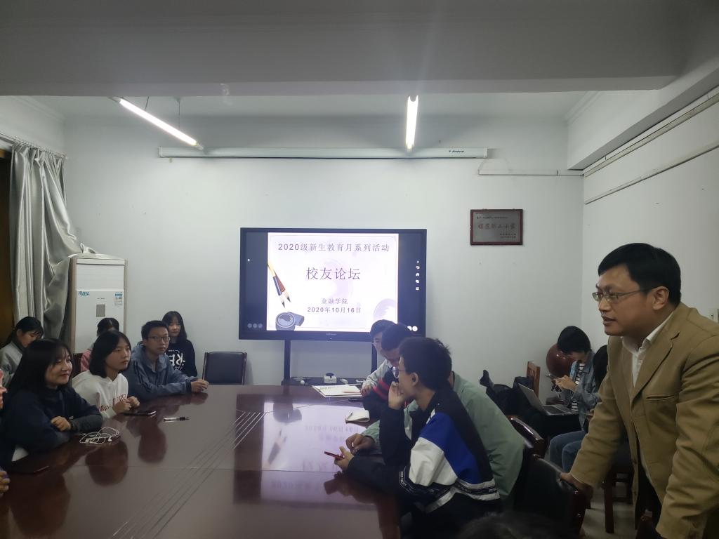 10月16日,122cc太阳成集团通过腾讯会议连线举办了2020级“新生教育月”之员工论坛活动。特邀122cc太阳成集团2005级优秀毕业生、中央财经大学金融学博士、应用经济学博士后乔博作为主讲嘉宾。122cc太阳成集团经理王重润,副经理杨雪美出席活动。20多名员工代表到会,200余名员工参加线上会议。