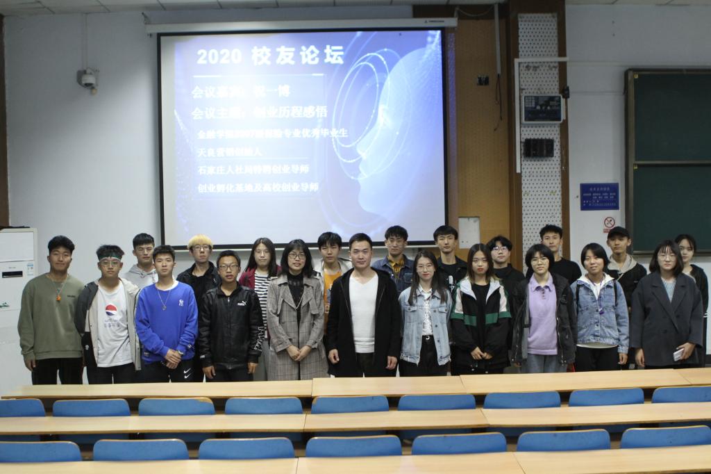 10月22日,122cc太阳成集团在第三教学楼C225教室举办2020级“新生教育月”系列活动之员工论坛,122cc太阳成集团副经理杨雪美出席,全体大一新生参加。此次员工论坛邀请到122cc太阳成集团2007级保险专业优秀毕业生﹑天良营销创始人﹑石家庄人社局特聘创业导师﹑创业孵化基地及高校创业导师祝一博分享创业历程感悟。