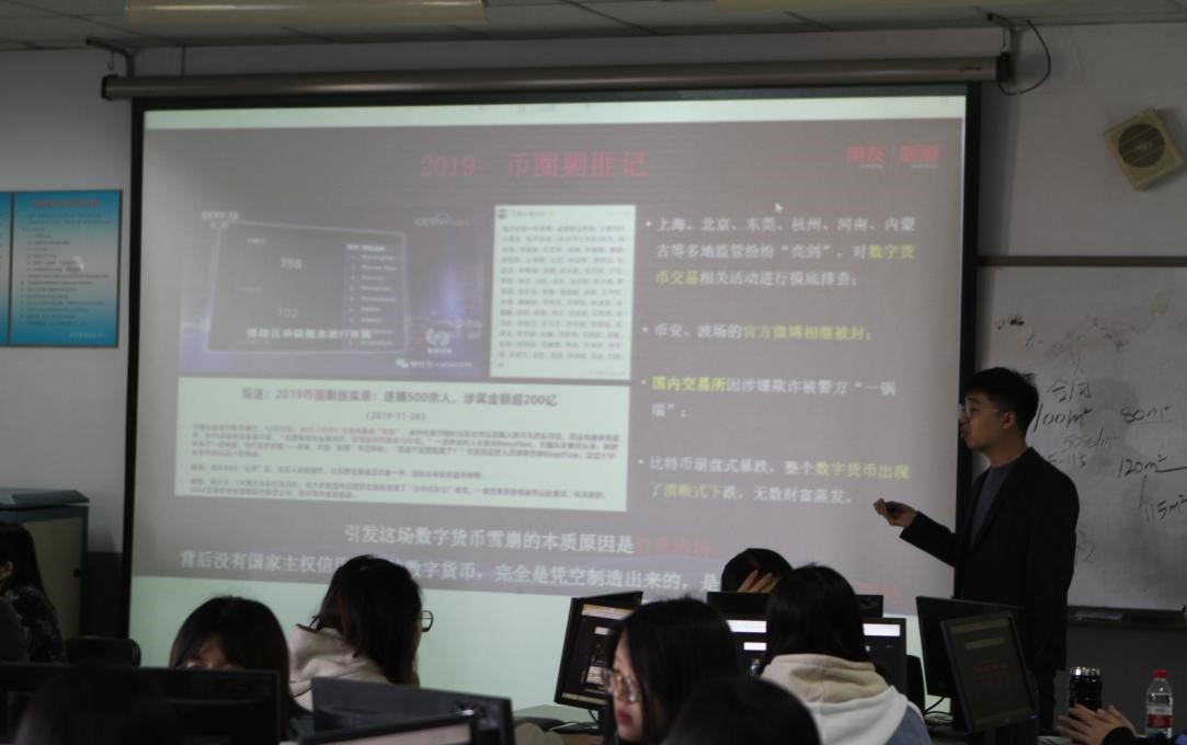 10月23日至24日,122cc太阳成集团联合北京新道科技有限公司举办了区块链金融专场培训会。此次培训由北京新道科技王永俊老师主讲,122cc太阳成集团部分老师以及19级金融科技实验班全体学参加。