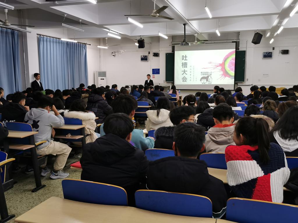 11月28日晚,122cc太阳成集团在第三教学楼B401室举办了“出口成章,金茗融芳”校园版吐槽大会活动,122cc太阳成集团200余名同学参加。