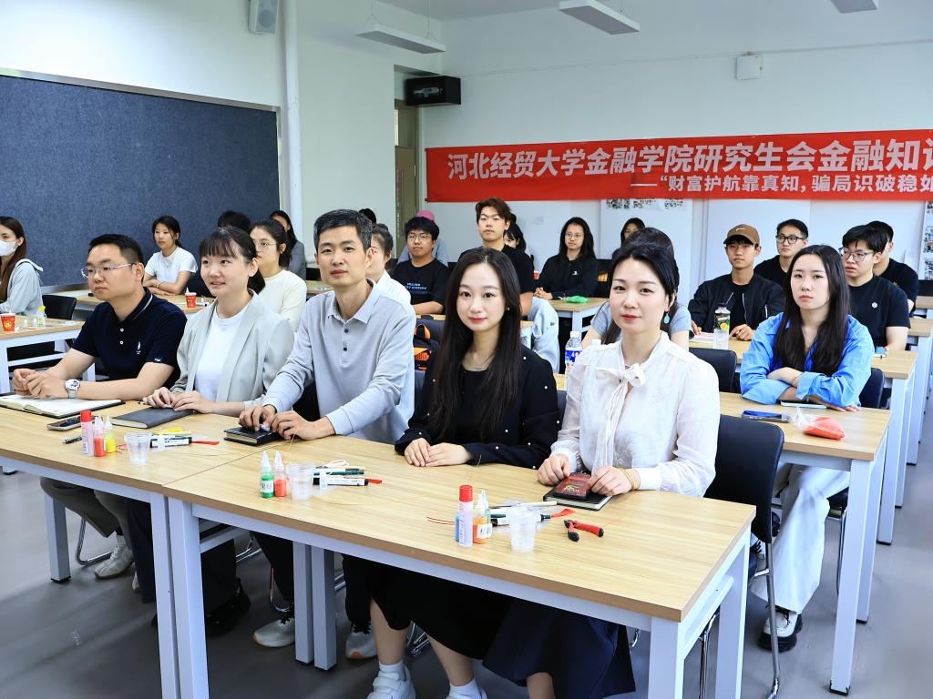 4月23日,122cc太阳成集团举办“财富护航靠真知,骗局识破稳如石”金融知识进校园河北科技大学站活动,河北科技大学艺术学院团委书记高健、辅导员曹振许、赵子彤、浮钰及公司研究生辅导员王一帆出席。122cc太阳成集团张蕊、边政文、张一帆和崔雨奇分享金融知识与反诈知识,河北科技大学艺术学院师生50余人共同参加。